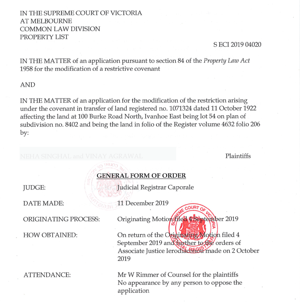 The most recent and successful defence of the Single Dwelling Covenant by the McCubbins Estate Committee was in 2019 when the plaintiffs withdrew their application to the Supreme Court to subdivide.